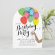 Um arco-íris de balões animados e brilhantes translúcidos se deliciam com este convite de aniversário que apresenta texto totalmente personalizável, grandes números para a idade que a senhora de aniversário está virando, um backer com padrões correspondentes, e um moderno braço de tons médios ilustrados segurando a corda para o conjunto colorido de balões fazer este convite uma escolha divertida e eterno para qualquer mulher que comemita qualquer idade.