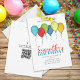 Convite Balões de Aniversário Confetti Código QR Mídia Soc