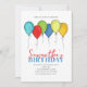 Convite de balões de aniversário. Para crianças, adultos ou anos de idade. com um código QR para o URL do site online, bem como um ícone de mídia social no Facebook para a página de eventos do partido. Confiança moderna e balões podem ser usados para convites de festas surpreendentes ou qualquer festa. Balões de água bonitinhos de aniversário, uma coloração mínima minimalista simples, uma celebração de confete divertida, uma surpresa festiva em qualquer idade, um amarelo azul verde vermelho, uma letra de roteiro de caligrafia de na moda, convites de festas de aniversários clássicos, convites simples, básicos de aniversário geral, um balbucioso e colorido ilustração de string ons