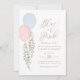 Convide amigos e familiares para que revelem com este convite elegante, com dois balões de aquarela e eucalipto com tipografia de ouro.