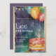 Convite Balões de bolo azul-laranja roxa 5 Aniversário