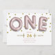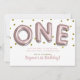 Convite Balões de Confetes em Rose Gold Aniversário de 1 U