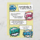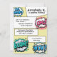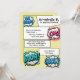 Este convite de festa personalizado apresenta um tema de história em quadrinhos colorido sobre um fundo amarelo. Palavras e frases de ação de tiras de quadrinhos populares dentro de balões de fala, como "Oh, Snap", "OMG!", "BOOM!" e "WOW!" são colocadas ao redor das bordas. As informações do evento são impressas dentro de caixas de bate-papo que se assemelham a histórias em quadrinhos típicas. É perfeito para um chá de noiva, festa de aniversário ou outra celebração emocionante.