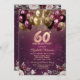 Convite Balões de Flores de Bourgonha com Brilho para Aniv