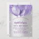 Para um elegante aniversário de 18 anos (ou qualquer idade). Um fundo na moda falsa de prata. Decorado com brilho de falso colorido violeta e lavanda e balões. Personalize e adicione um nome, idade e detalhes da festa. O nome é escrito com um script de estilo manuscrito