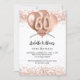 Para um elegante aniversário de 60 anos. Um fundo branco na moda. Decorado com rosa dourado, cintilação falsa rosa, faíscas e balões. Personalize e adicione um nome e detalhes da festa. O nome é escrito com um script de estilo manuscrito, número 60 com fontes de estilo de balão.