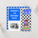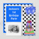 Convites de festas de primeiro aniversario para rapazes. Adequado para todos os aniversários e eventos etários. Pontos negros e brancos e fundo branco e azul comum com torre atual, balões azuis. Silver Trims para adicionar brilho. Adicione sua própria Fotografia para personalizar. Personalizar para alterar o estilo e o tamanho da fonte. O Rsvp está disponível sob solicitação em estilo semelhante.