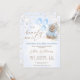Brown Beige Bear Balloons Stars Chá de fraldas Convite Sweet Podemos esperar o convite do chá de fraldas temático para definir a cena do chá de fraldas de um menino. Isto podemos esperar muito pouco o convite do chá de fraldas apresenta um urso bonito, balões azuis em forma de coração, cabeçalho de caligrafia de linha mono, nuvens e estrelas.
