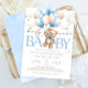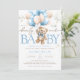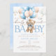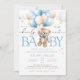 Urso de pelúcia com balões podemos esperar um convite para chá de fraldas.