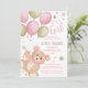Convite Balões de Urso Rosa, Chá de fraldas Dourado De Gar