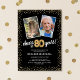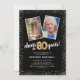 Celebre o grande marco de completar oitenta anos com nossos convites de aniversário elegantes. Com um fundo preto moderno personalizável, um modelo de foto de então e agora e detalhes dourados, esses convites certamente deixarão uma impressão duradoura. Os detalhes de balão de hélio dourado adicionam um toque de magia, enquanto o modelo de texto de aniversário de 80 anos é fácil de personalizar. Porque o estilo não tem limite de idade!