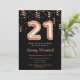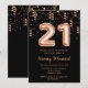 Este elegante e glamouroso convite de aniversário apresenta o número 21 em ouro rosa com confete de ouro rosa. O texto combina o script manuscrito e as fontes sans serif modernas para um aspecto elegante e sofisticado.