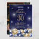 Ele é a estrela da noite!! Este fabuloso convite de festas de surpresa aniversário de 30 anos para homens, com uma margem inferior de balões azuis e dourados marinhos, o número 30 em ouro, e uma foto do convidado de honra é perfeito para celebrar o homem na aniversário de 30 anos da sua vida. É tradicional e clássico enquanto é fresco, moderno e contemporâneo. Para personalizar, selecione simplesmente "Personalizar este modelo", carregue uma foto favorita e digite suas informações. É super fácil!