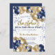 Uma festa de aniversário ou um convite para comemoração lindos. Um fabuloso design de balões azuis e dourados marinho com muito espaço para os detalhes da sua festa - perfeito para anunciar uma celebração para uma oitenta festa. Na moda de convite de cartão simples.