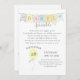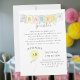 Aproveite este chá de aspersão para bebês projetado com uma faixa colorida de "Baby!" no topo, um balão amarelo, e um ursinho bonito segurando um guarda-chuva nas costas. Poema a ser personalizado, assim como modelos. Esta design é neutra em termos de gênero. Verifique a coleção correspondente na guia na parte superior da página. #babysprinkle