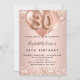 Para um aniversário de 30 anos elegante. Um fundo de gradiente rosa ouro. Decorado com rosa dourado, cintilação falsa, faíscas e balões. Personalize e adicione um nome e detalhes da festa. O nome é escrito com um script de estilo manuscrito, número 30 com fontes de estilo de balão.