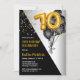 Balões pretos como uma gota de trás para balões de números de tons de ouro dão um talento dramático a esta design de Festa de aniversário 70. Design composto por Holiday Hearts Design (direitos reservados). Outros números de idade estão disponíveis no nosso compro. Se você não vir um design para a idade específica que está procurando, o designer de mensagens em info@holidayheartsdesigns.com ou através do bate-papo Zazzle.