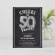 Celebrando a 50! Estes 50º convites para a festa de aniversário foram desenhados com o título 'Saúde a 50 Anos!'. Apresentando um fundo chalkboard rústico, balões de hélio número 50, tipografia branca moderna e uma modelo simples e fácil de personalizar.