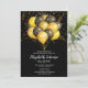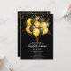 Um vibrante convite à festa de formatura virtual preta com balões dourados e negros e um confete dourado em fluxo e tipografia da moda branca contrastava com uma serifa sans moderna. Personalize o seu partido. Um destaque em preto e ouro!