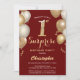 Surpresa primeiro aniversario Vermelho Negro e Balões Dourados Confetti Convite. Para mais personalização, clique no botão "Personalizar" e use nossa ferramenta de design para modificar este modelo.