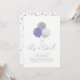 Celebre um dia especial para sua pessoa querida com este convite de chá de bebê fofo! Este design apresenta tipografia elegante "é uma menina" com balões e confetes em uma combinação de cores roxo, cinza e prata. Combine seu convite com as decorações do seu chá de bebê. Convite perfeito para um chá de bebê moderno ou baby sprinkle. Se você precisar de uma cor ou design personalizado, por favor entre em contato comigo por e-mail (barabomdesign@gmail.com).