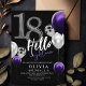 Convite Balões roxos pretos de prata preta do 18º aniversá
