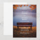Um design sereno e romântico apresentando uma cena tranquila à beira do lago com um banco de madeira cercado por uma suave folhagem de outono. O fundo enevoado e os tons quentes da estação criam uma atmosfera calma e íntima, perfeita para uma apresentação atemporal e emocional. A paisagem natural adiciona profundidade e elegância, tornando-a ideal para anunciar um momento especial em um estilo refinado e inspirado na natureza.