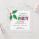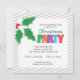 Este convite de festas de Natal apresenta uma cinza de tendências e um fundo de faixa diagonal branca acentuado com um gráfico de holly verde. O texto personalizável permite adicionar todos os detalhes de sua parte. Isto é perfeito para uma festa de Natal do escritório.
