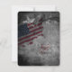 Esta design apresenta os Estados Unidos com uma bandeira Patriótica. Há também estrelas decorativas e uma cinza e fundo preto de grunge. Este Convite para Casamento é perfeito para Casamentos Patrióticos, Militares e 4 de julho em Sombras de Vermelho, Branco, Azul, Cinzas e Negro. *