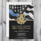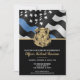 Honre a dedicação e o trabalho de duro de um novo oficial de polícia com este convite de formatura policial personalizável. Apresentando um crachá policial e a bandeira da polícia com riscas brancas e pretas e uma orgulhosa linha azul fina, esta design simboliza força, serviço e sacrifício. O convite é personalizado com o nome e os detalhes da festa do formando, fazer-o como uma lembrança memorável para amigos, familiares e colegas oficiais. Perfeito para celebrar a graduação, promoção ou marco de uma academia de polícia na carreira de um futuro oficial. Convide seus convidados em estilo e mostre suporte para o membro mais novo da comunidade de linha azul fina.