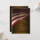 Gloriosa bandeira americana ondulando contra um fundo marrom escuro. Um modelo de festa de aposentadoria elegante que é simples de editar. Este design elegante é adequado para veteranos, militares, policiais, empregos relacionados ao governo ou empregos relacionados ao patriotismo.