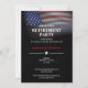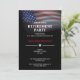 Gloriosa bandeira americana ondulando contra um fundo preto. Um modelo de festa de aposentadoria elegante que é simples de editar. Este design elegante é adequado para veteranos, militares, policiais, empregos relacionados ao governo ou empregos relacionados ao patriotismo.