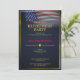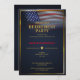 Gloriosa bandeira americana ondulando contra um fundo azul escuro. Um modelo de festa de aposentadoria elegante que é simples de editar. Este design elegante é adequado para veteranos, militares, policiais, empregos relacionados ao governo ou empregos relacionados ao patriotismo.