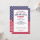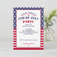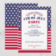 Personalize e customize o convite para festa de 4 de julho vermelho, branco e azul. Celebre o Dia da Independência com estilo com nosso convite moderno personalizado. Design patriótico com as cores icônicas da bandeira americana, estrelas e listras é perfeito para qualquer evento do Dia 4 de julho. Convide seus convidados para se juntarem à celebração da independência da América com este convite legal e divertido.