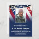 Modelo clássico de foto de um design vermelho, branco e azul de bandeira dos EUA com luzes de festas de cordas celebratórias para esses convites de festas de aposentadoria militar que você pode personalizar para sua próxima celebração.