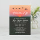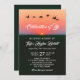 Um convite memorial com uma foto de um bando iluminado por trás de pássaros voando através do oceano de madrugada. O convite ao funeral do nascer do sol com pássaros, um sol ascensão e o oceano. Celebração do convite à vida com aves voando sobre o oceano no nascer do sol.