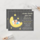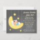 Brilhe, brilhe, estrelinha, que milagre adorável você é! Este convite de banho de bebê fofo e elegante é perfeito para convidar os convidados para celebrar com a futura mamãe antes do grande dia! O convite tem um adorável menino dormindo beatificamente na lua crescente enquanto estrelas cintilantes e brilhantes brilham lindamente em todo o fundo cinza contrastante. Personalize facilmente com os detalhes da sua festa.