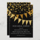 Convidado de Janto de ensaio em homenagem à noiva e ao noivo, geralmente hospedados pelos pais do noivo. Sonolento. Moderno. Chic. Glam subestimado - com faixas de pennant brilhantes em dois tons de brilho de ouro com cintilação cintilante caindo confetti em vários tamanhos e sombra de ouro. As estrelas brilhantes de estrelas de estouro cintilantes destacam a faísca. Um layout de texto de tipografia muito contemporâneo que é tudo menos tradicional. É simples e breve. Diz aos seus convidados, "Vamos dar uma festa e será a festa da vida!" Para a noiva e noiva elegante, mas não tradicional. CORES: preto a jato e ouro, brilhos de ouro. Especialmente adequado para o outono ou casamentos no inverno, Festas de Véspera de Ano Novo, Festas de aniversário e anúncios da festa de Aniversário.