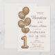 invitation with balloons Christening and first year in Spanish. Invitación de Bautizo y primer añito para niña con globos