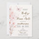 Pink invitation with butterflies Christening and first year in Spanish. Invitación de Bautizo y primer añito para niña con globos