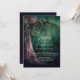 A whimsical watercolor illustration of lush foliage in emerald green and gold, sparkling with fairy lights and magic dust, with a dreamy, fairytale, botanical and floral arrangement as well as a dusty pink and mauve, draped veil, decorate this spring summer fall winter baptism or christening invitation with an enchanted forest theme. An elegant, modern invitation for a fairytale celebrations. Perfect for moms and parents who love the fairytale forest setting, the fairy forest or fairy garden theme and emerald green and gold and who want a gender neutral celebration.