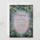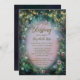 A whimsical watercolor illustration of lush foliage in emerald green and gold, sparkling with fairy lights and magic dust, with a dreamy, fairytale frame in dusty pink, decorates this spring summer fall winter baptism or christening invitation with an enchanted forest theme. An elegant, modern invitation for a fairytale celebrations. Perfect for moms and parents who love the fairytale forest setting, the fairy forest or fairy garden theme and emerald green and gold and who want a gender neutral celebration.