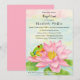 A graceful baptism invitation features a delicate pink waterlily in full summer bloom, symbolizing love, renewal, and the blessing of new life. A red-eyed tree frog adds a touch of gentle wonder and joyful innocence, bringing warmth and happiness to the design. Thoughtfully created for this sacred occasion, the artwork sets a peaceful and heartfelt tone as family and friends gather to celebrate a cherished child’s baptism and welcome them into a life of faith and love.