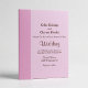 Um rosa suave combinado com um rosa mais profundo, criando um contraste quente e romântico. O texto é estilizado em burgundy rico, misturando uma fonte serifada limpa para os detalhes formais com escrita fluída para os nomes e títulos.