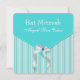 Convites de Bar Mitzvah listrados de azul turquesa e branco. Você pode personalizar facilmente este lindo convite de Bar Mitzvah azul turquesa simplesmente adicionando seus detalhes no estilo de fonte e redação de sua escolha.