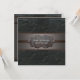 Lindo convite de Bar Mitzvah de couro preto rústico impresso em marrom e preto.