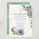 Convite de bar mitzvah de casamento trendy com suculentas com moldura geométrica dourada e lavagem de aquarela verde sage reversa.