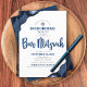 Convite Bar Mitzvah Simple Modern Marinho Blue Agate Scrip