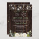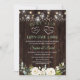 Design único com a tipografia "Eu faço, eu também" dentro dois corações, aquarela Flores brancas buquê e quadro (no verso), em um celeiro antigo. Este é um modelo, então use a ferramenta personalizar para adicionar suas informações. Visite, por favor, minha nova coleção de CHURRASCOS.
