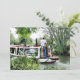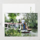 Um desenho artístico de um homem conduzindo seu barco estreito ao longo do canal. Barcos de canal, conhecidos no Reino Unido como barcos estreitos, eram originalmente usados para transportar mercadorias pelo país. Eles são agora usados principalmente para lazer e atraem pessoas de todo o mundo para desfrutar de nossa zona rural. Esses barcos parecem muito bonitos com suas cabines de cores vivas, tradicionalmente azuis, vermelhas ou verdes. Flores e desenhos de castelos também adornam os barcos mais tradicionais.